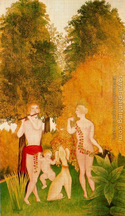 * Hand-painted Henri Rousseau Oil Painting Reproduction : Happy Quartet II