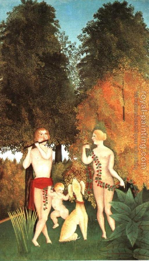 * Hand-painted Henri Rousseau Oil Painting Reproduction : Happy Quartet