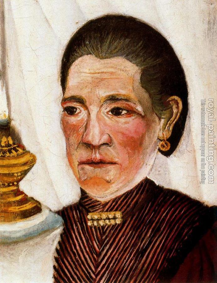 * Hand-painted Henri Rousseau Oil Painting Reproduction : Portrait of the Artists Second Wife with a Lamp