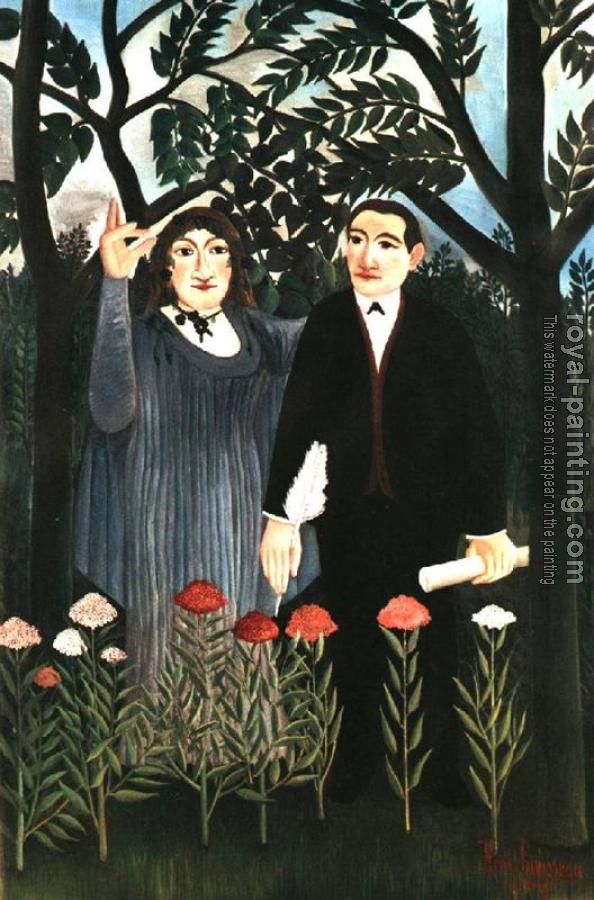 * Hand-painted Henri Rousseau Oil Painting Reproduction : The Muse Inspiring the Poet II