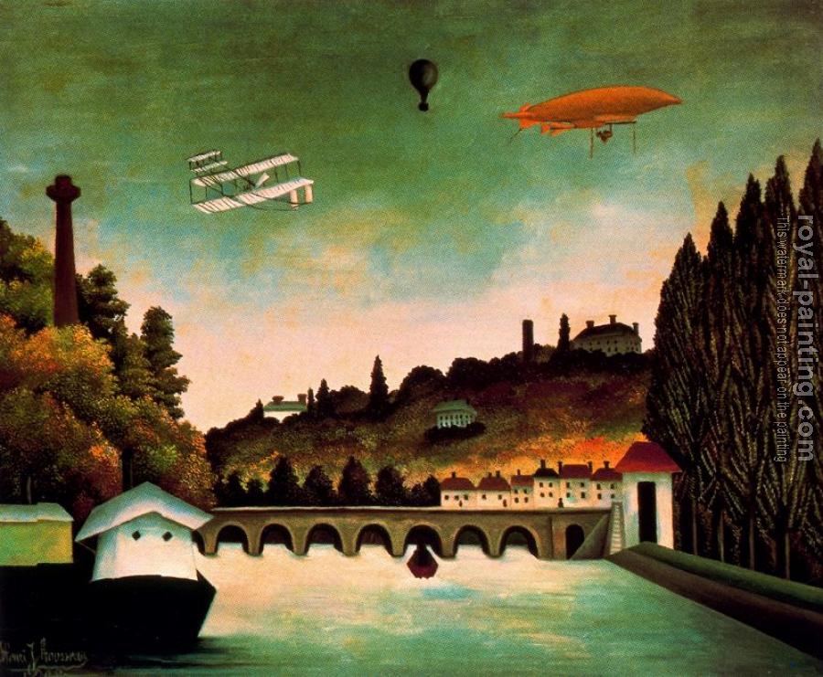 * Hand-painted Henri Rousseau Oil Painting Reproduction : View of the Bridge at Sevres and the Hills at Clamart St. Cloud and Bellevue