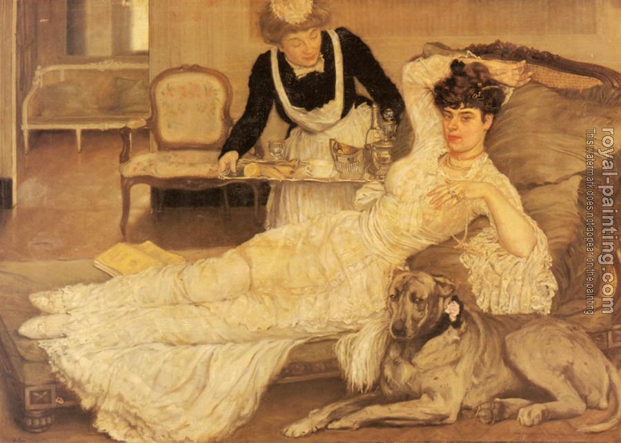 * Hand-painted Henry Caro-Delvaille Oil Painting Reproduction : Tea Time