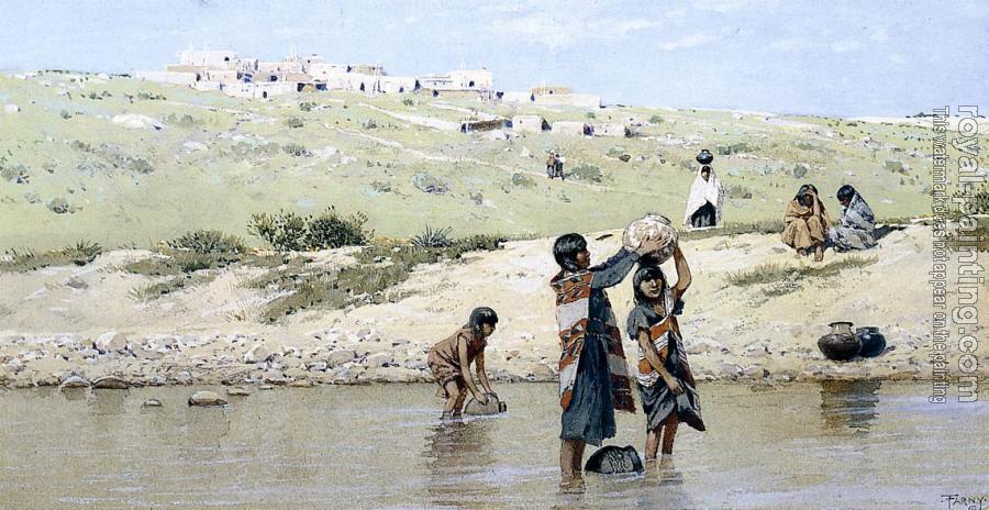 * Hand-painted Henry Farny Oil Painting Reproduction : Drawing Water