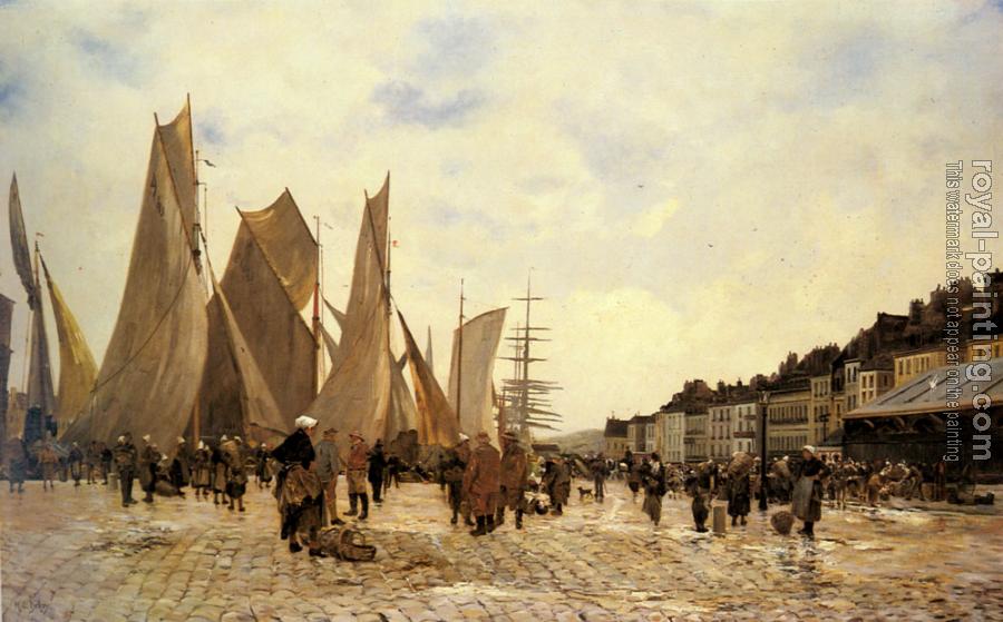 * Hand-painted Hippolyte Camille Delpy Oil Painting Reproduction : The Docks at Dieppe