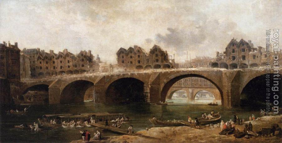 * Hand-painted Hubert Robert Oil Painting Reproduction : Demolition of the Houses on the Pont Notre-Dame in 1786