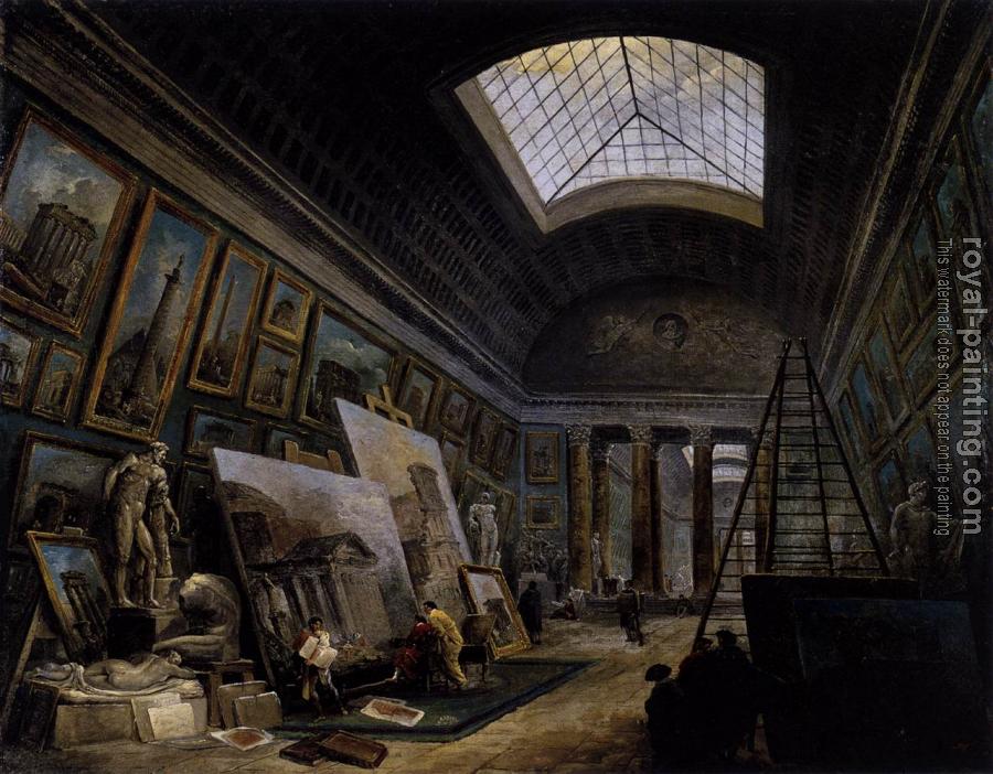 * Hand-painted Hubert Robert Oil Painting Reproduction : Imaginary View of the Grande Galerie in the Louvre