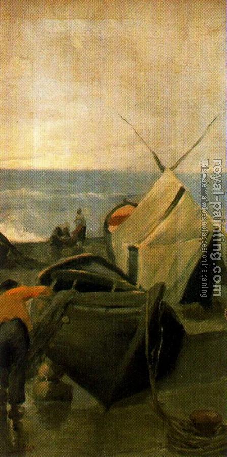 * Hand-painted Ignacio Diaz Olano Oil Painting Reproduction : Limpiando barcas