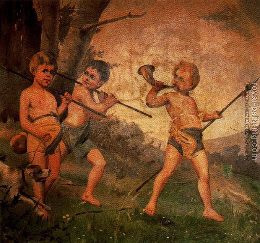 * Hand-painted Ignacio Diaz Olano Oil Painting Reproduction : Ninos de caceria. La salida