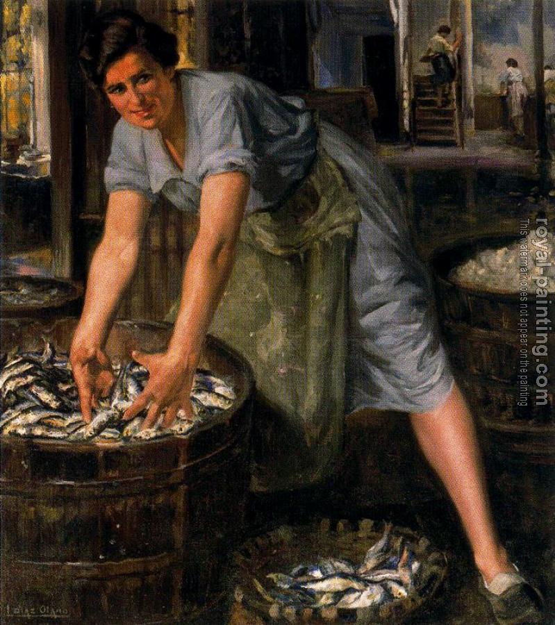 * Hand-painted Ignacio Diaz Olano Oil Painting Reproduction : Sardinera (o fabrica de salazon)