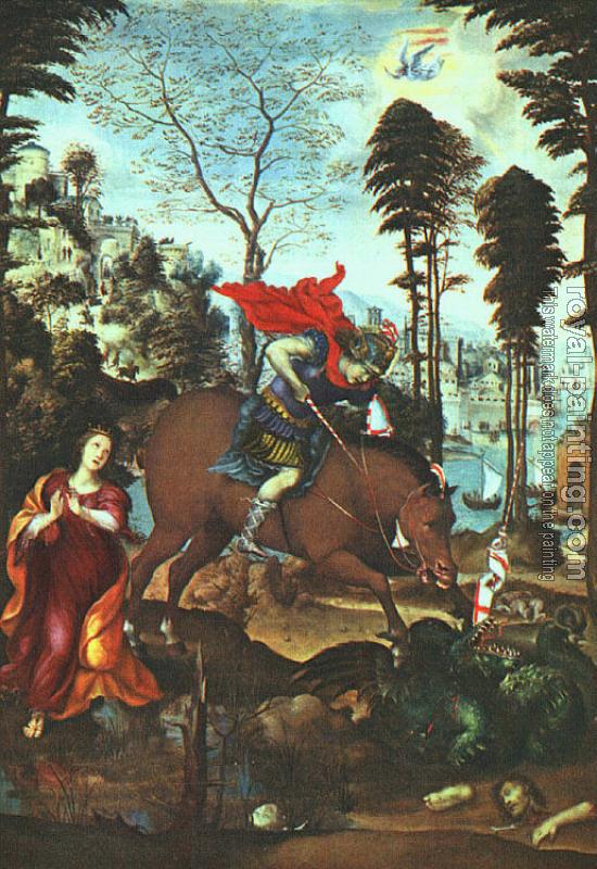 Museum quality reproduction of "St George and the Dragon". Wholesale oil painting reproductions of Il Sodoma. We also create oil paintings from your photos or print that you like. Turn your photos into beautiful portrait paintings. Most orders will be delivered in 1-3 weeks depending on the complexity of the painting.