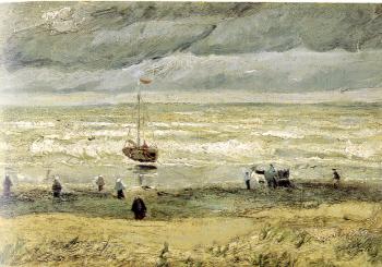 Beach with Figures and sea with a ship