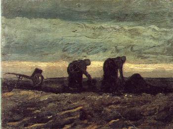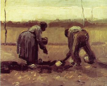 Peasant Man and Woman Planting Potatoes