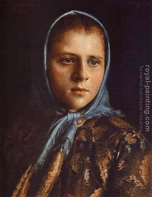 Russian Girl in a Blue Shawl by Ivan Nikolaevich Kramskoy
