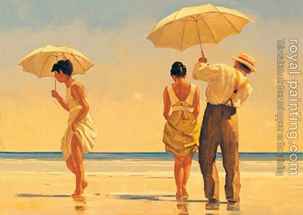 Mad Dogs by Jack Vettriano - Canvas Picture. Two ladies and a gentleman using a gorgeous day to paddle in the sea but the sun so strong parasols are...
