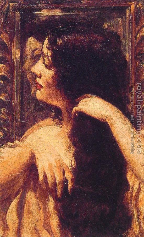 * Hand-painted James Carroll Beckwith Oil Painting Reproduction : Brunette Combing Her Hair