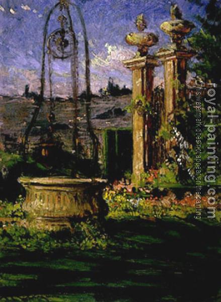 * Hand-painted James Carroll Beckwith Oil Painting Reproduction : In the Gardens of the Villa Palmieri