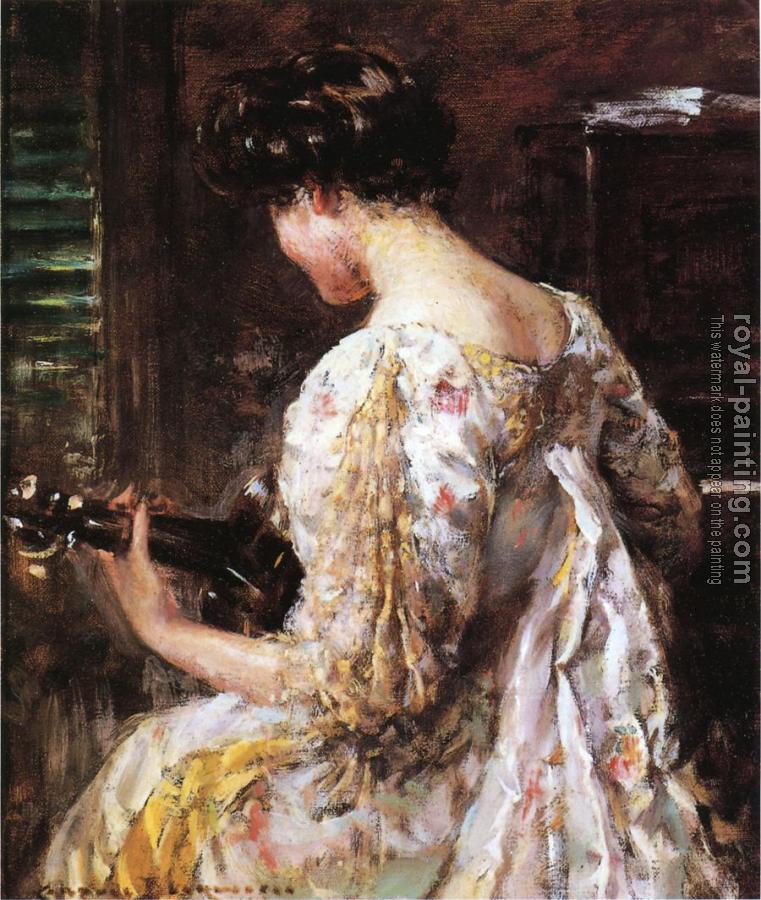 * Hand-painted James Carroll Beckwith Oil Painting Reproduction : Woman with Guitar
