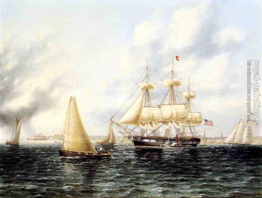 * Hand-painted James E Buttersworth Oil Painting Reproduction : New York Harbor
