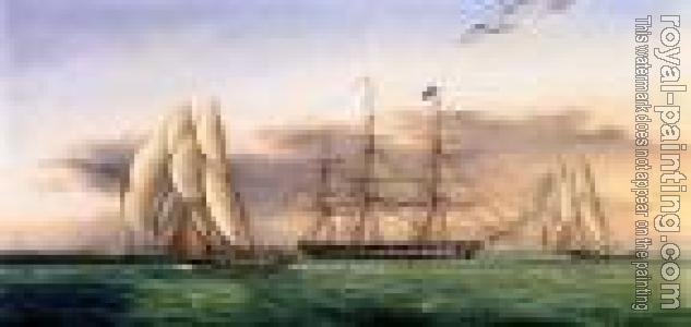* Hand-painted James E Buttersworth Oil Painting Reproduction : Ships off Castle Garden