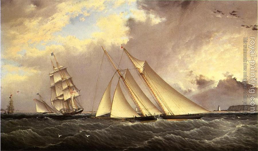 * Hand-painted James E Buttersworth Oil Painting Reproduction : The Dauntless off Sandy Hook