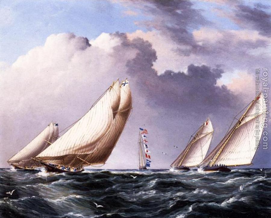 * Hand-painted James E Buttersworth Oil Painting Reproduction : Yachts Rounding the Mark