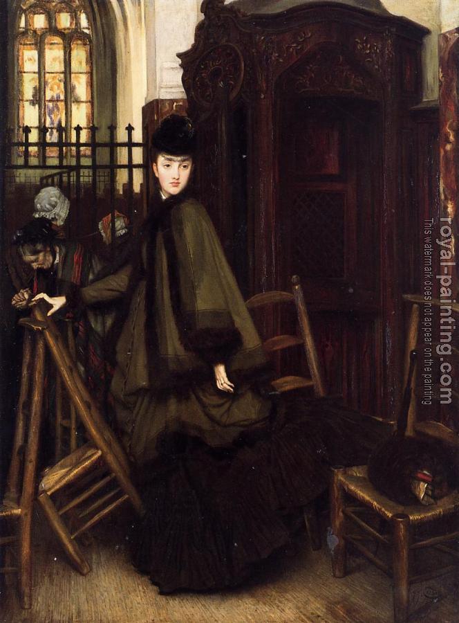 * Hand-painted James Tissot Oil Painting Reproduction : In Church
