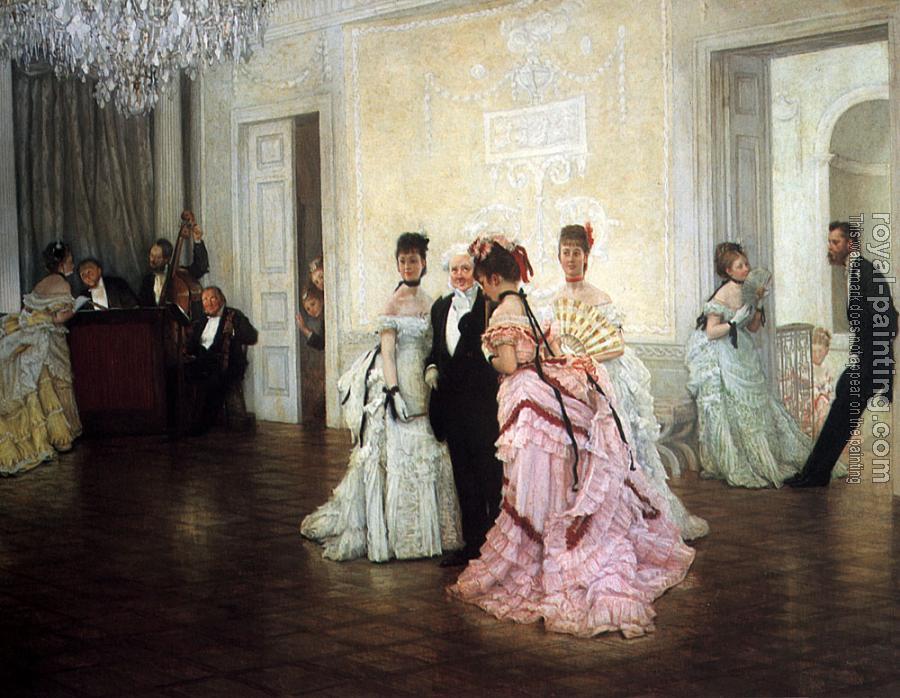 * Hand-painted James Tissot Oil Painting Reproduction : Too Early II