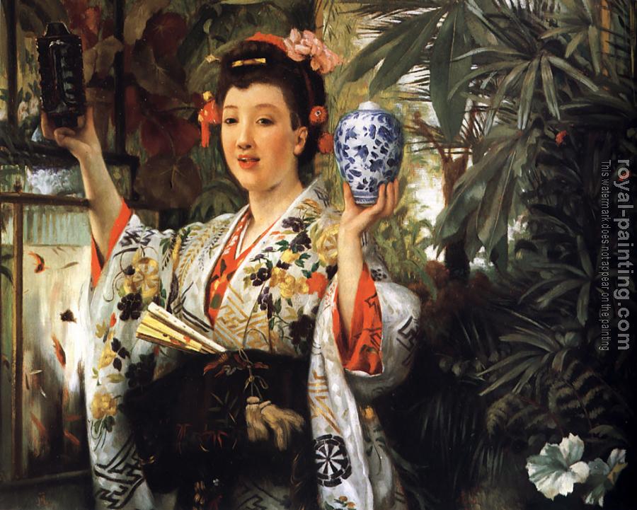* Hand-painted James Tissot Oil Painting Reproduction : Young Lady Holding Japanese Objects
