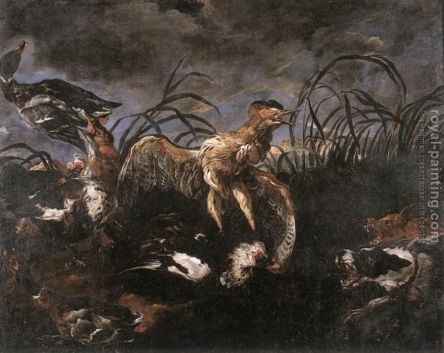 * Hand-painted Jan Fyt Oil Painting Reproduction : Bittern and Ducks Startled by Dogs