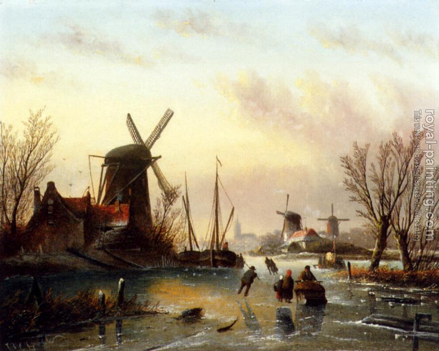 A Frozen River Landscape by Jan Jacob Coenraad Spohler