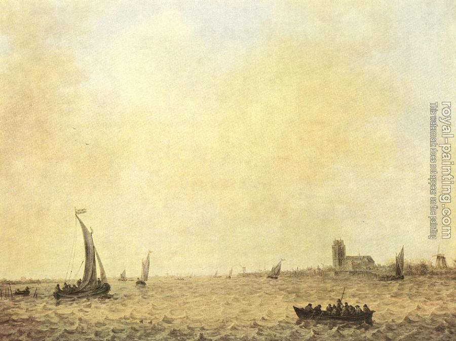 * Hand-painted Jan Van Goyen Oil Painting Reproduction : View of Dordrecht from the Oude Maas