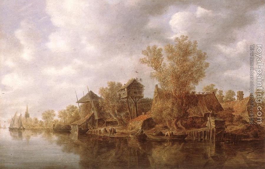 * Hand-painted Jan Van Goyen Oil Painting Reproduction : Village at the River