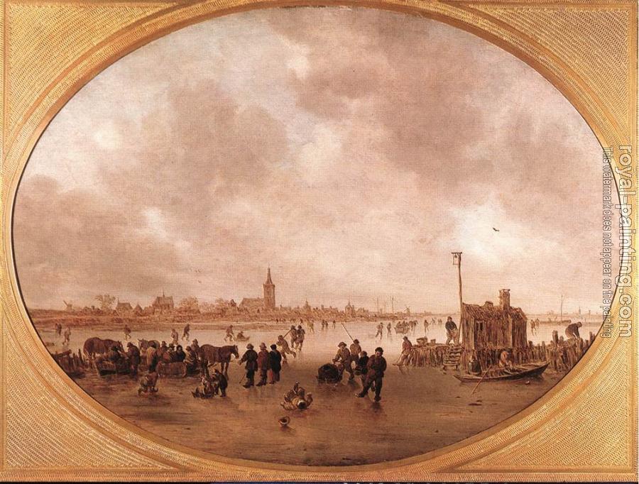 * Hand-painted Jan Van Goyen Oil Painting Reproduction : Winter on the River