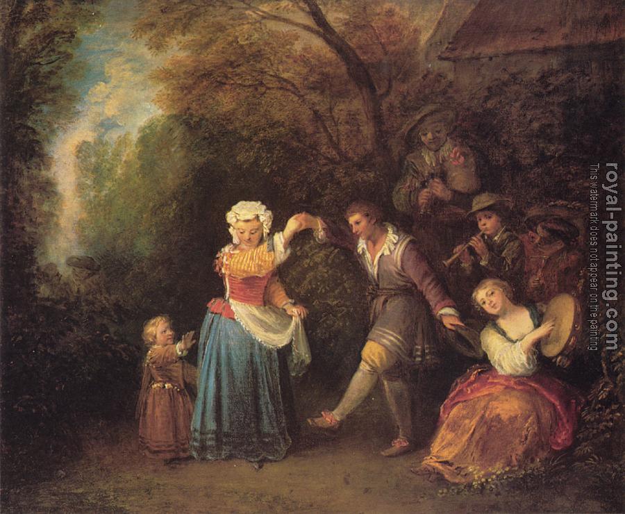 * Hand-painted Jean-Antoine Watteau Oil Painting Reproduction : La Danse Champetre