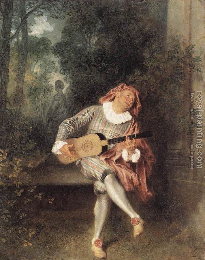 * Hand-painted Jean-Antoine Watteau Oil Painting Reproduction : Mezzetin