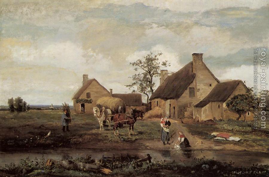* Hand-painted Jean-Baptiste-Camille Corot Oil Painting Reproduction : A Farm in the Nievre