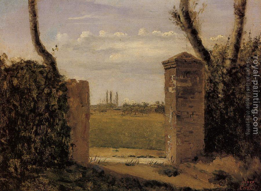 Boid-Guillaumi, near Rouen, A Gate Flanked by Two Posts by Jean-Baptiste-Camille Corot