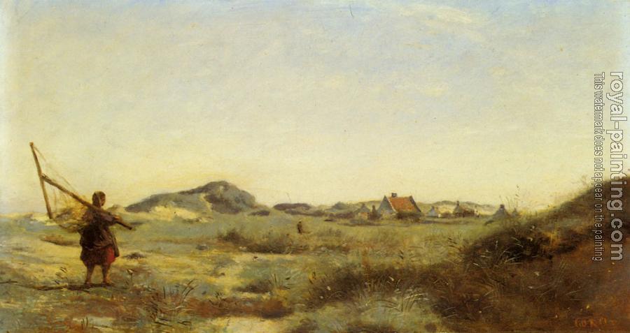* Hand-painted Jean-Baptiste-Camille Corot Oil Painting Reproduction : Dunkerque-Une Pecheuse de Crevettes