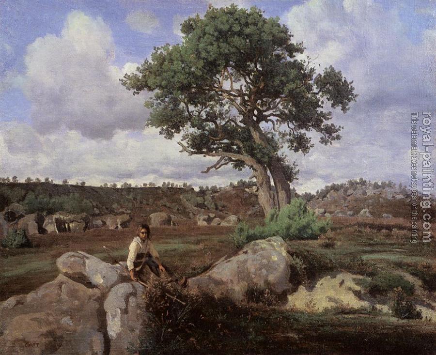 * Hand-painted Jean-Baptiste-Camille Corot Oil Painting Reproduction : Fontainebleau, 'The Raging One'