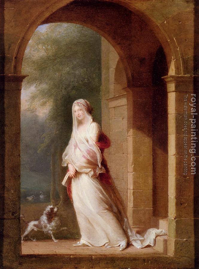 A Young Woman Standing In An Archway by Jean-Baptiste Mallet