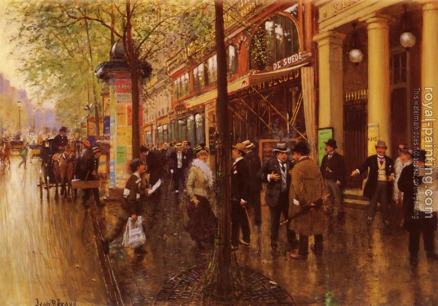 * Hand-painted Jean Beraud Oil Painting Reproduction : Les Grands Boulevards-LeTheature Des Varietes