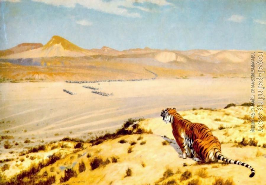 * Hand-painted Jean-Leon Gerome Oil Painting Reproduction : Tiger on the Watch II