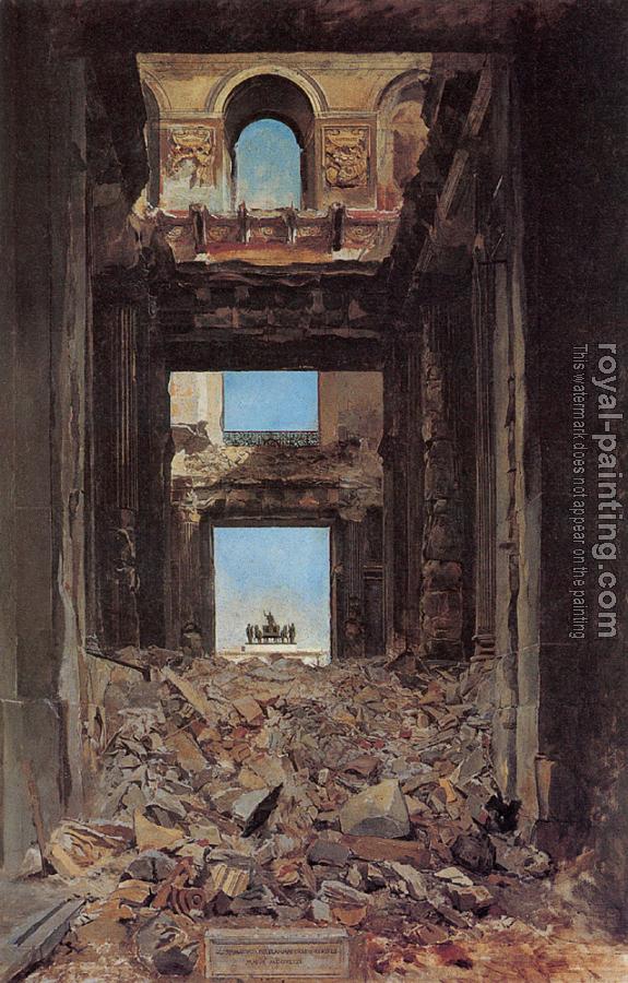 * Hand-painted Jean-Louis Ernest Meissonier Oil Painting Reproduction : The Ruins of the Tuileries Palace after the Commune