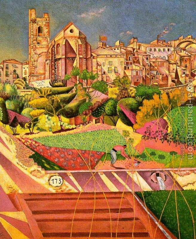 * Hand-painted Joan Miro Oil Painting Reproduction : Montroig, Village and Church