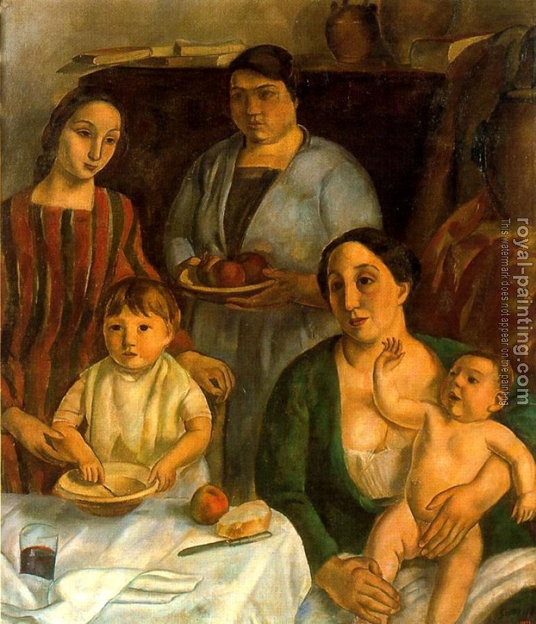 * Hand-painted Joaquim Sunyer De Miro Oil Painting Reproduction : Mi familia