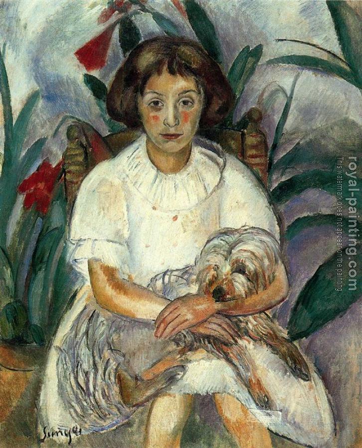 * Hand-painted Joaquim Sunyer De Miro Oil Painting Reproduction : Nina con un perro