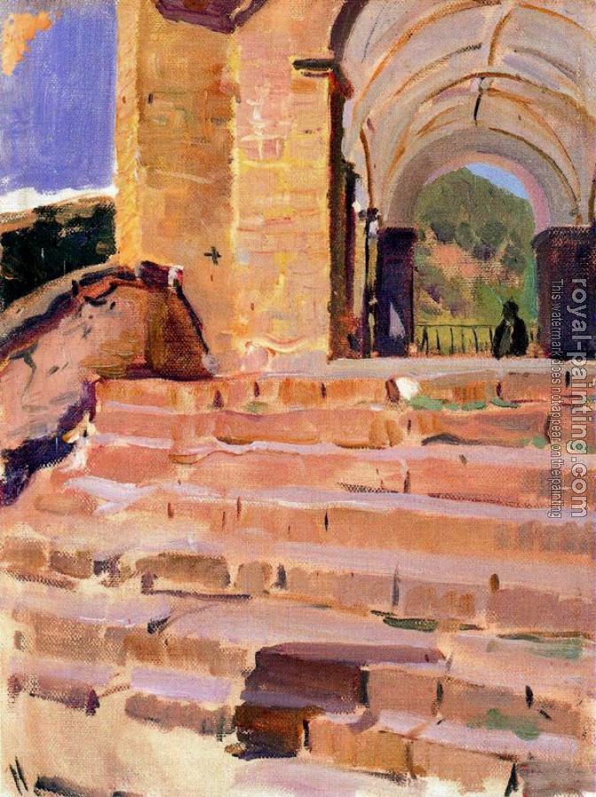 * Hand-painted Joaquin Sorolla Y Bastida Oil Painting Reproduction : Church Roncal stairs