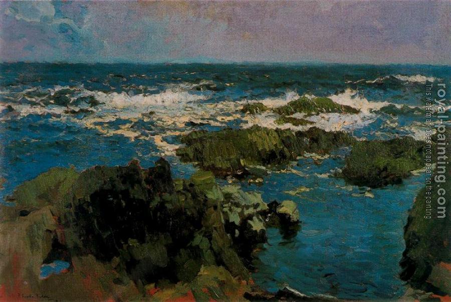 * Hand-painted Joaquin Sorolla Y Bastida Oil Painting Reproduction : Sea and rocks in San Esteban, Asturias