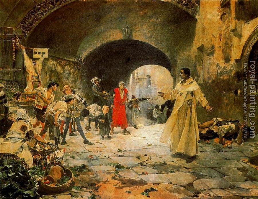* Hand-painted Joaquin Sorolla Y Bastida Oil Painting Reproduction : The father Jofre protecting a madman