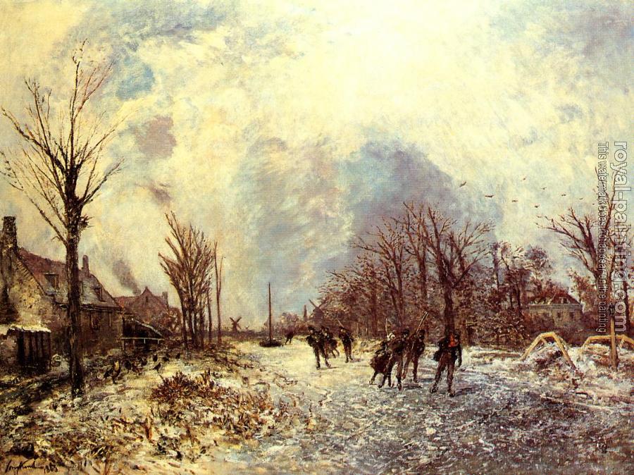 * Hand-painted Johan Barthold Jongkind Oil Painting Reproduction : Skaters in Holland